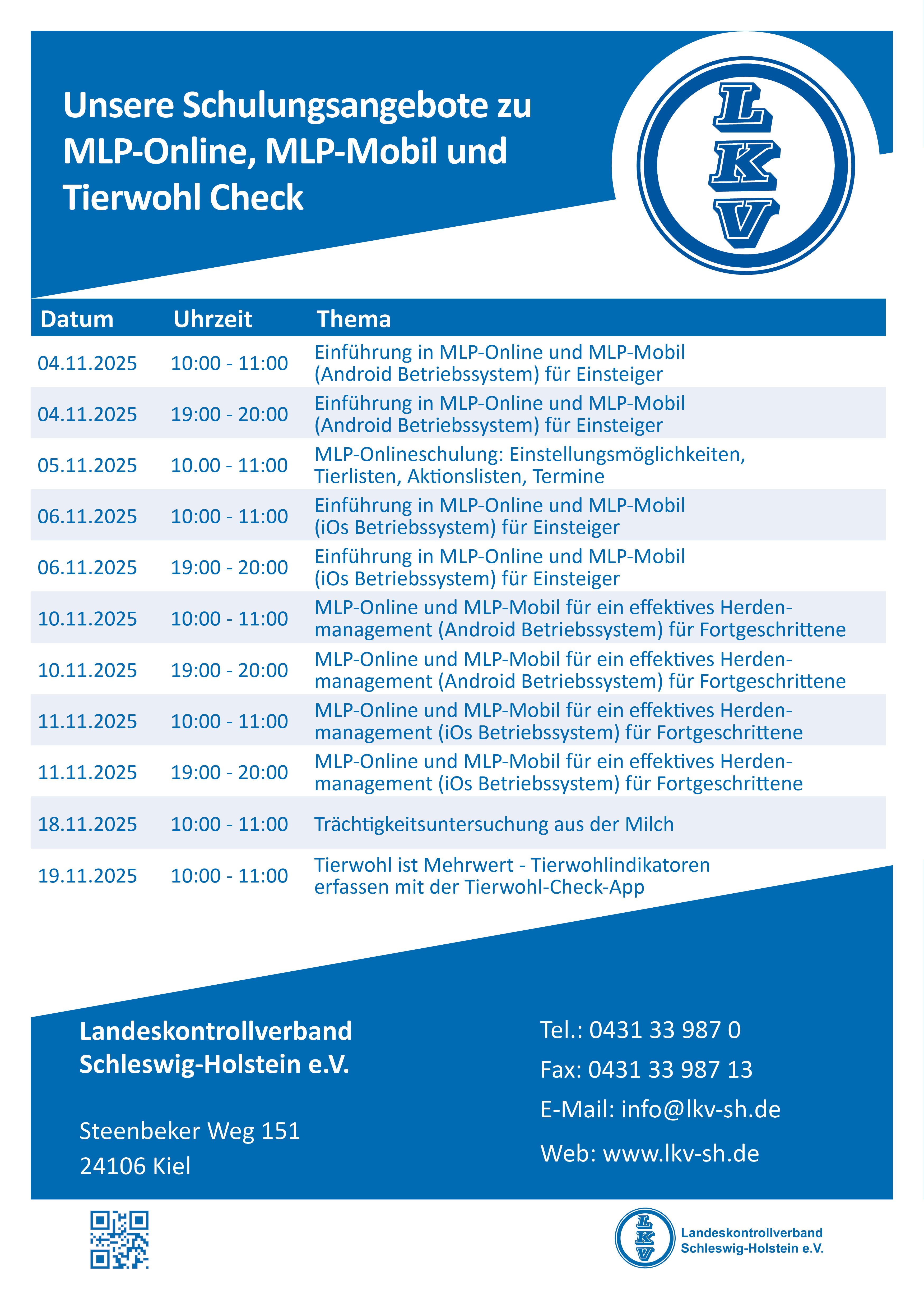 Unsere Schulungsangebote zu MLP-Online, MLP-Mobil und Tierwohl Check